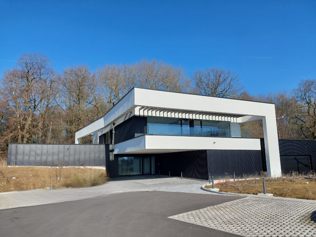 Le projet porte sur la construction d’un immeuble de bureaux à Jumet, développant environ 800 m² de surfaces professionnelles. Le bâtiment s’organise sur plusieurs niveaux autour de plateaux de bureaux flexibles, complétés par des espaces de services et de circulation. L’architecture se distingue par un étage en double porte-à-faux, à l’avant et à l’arrière, affirmant la volumétrie du projet. Cette configuration structurelle contribue à la lisibilité des fonctions et à la qualité des espaces extérieurs couverts, tout en assurant une insertion maîtrisée dans le site.