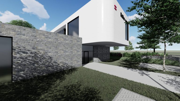 Le projet concerne la construction d’une agence bancaire Belfius à Marche-en-Famenne, développant une surface d’environ 880 m² sur un rez-de-chaussée et un étage en toiture plate. L’architecture contemporaine repose sur une composition de volumes horizontaux et de porte-à-faux marqués à l’étage. Le rez-de-chaussée est traité en revêtement de moellons, tandis que l’étage est habillé de panneaux métalliques blancs, soulignant clairement la hiérarchisation des niveaux et la lecture architecturale du bâtiment. Les espaces intérieurs accueillent les fonctions ouvertes au public, les zones de conseil, les bureaux et les locaux techniques, organisés de manière rationnelle et fonctionnelle.